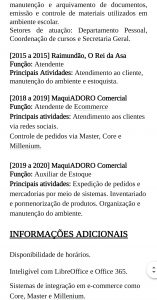 Principais atividades: Atendimento aos clientes via redes sociais. Controle de pedidos via Master, Core e Millenium.